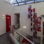 One of the challenges of this project was adding value to the interior spaces of the old building using design and state-of-the-art materials. The empty spaces in the building were enhanced with metallic structures covered in printed canvas with motifs that stand out the natural light and hide the views between the rooms. The trees on the pavement were integrated with the high contrast between the bright colors of the façade and powerful lighting.