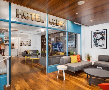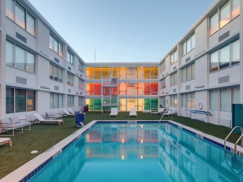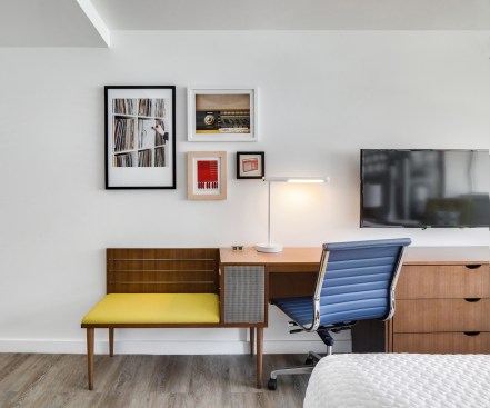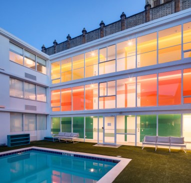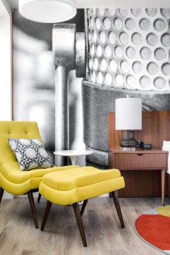 Located in downtown Memphis, Tennessee, the 1963 Sterick North Garage & Hotel is a seven-story garage with a three-story hotel built above. As part of this project the building was listed on the National Register of Historic Places in February, 2018. Its listing on the NR is primarily for the building’s innovative structural design allowing it to contain a 3-story hotel atop a 7-story parking garage using single tee prestressed concrete beams. Its name is derived from its original purpose as a garage providing additional parking for the historic Sterick Building directly adjacent to the south. With a mid-century modern composition of concrete, aluminum, and glass, the building’s ten full floors are announced in layers, with a hotel lobby, restaurant/nightclub, retail and parking entrances at its base, topped by six floors of parking for 400 cars, which are then topped by the remaining three floors of the hotel. The building’s original mid-century modern design was largely preserved with the exception of ramps and steps to the hotel lobby, enclosed alley entrance at the ground floor elevator lobby, and finishes throughout the hotel.