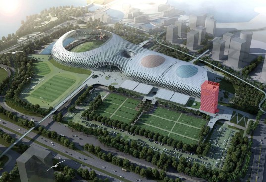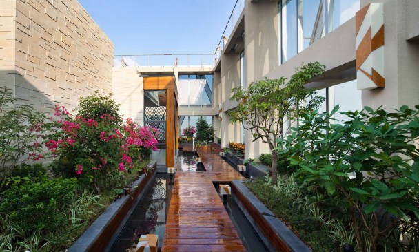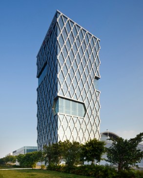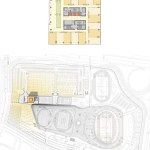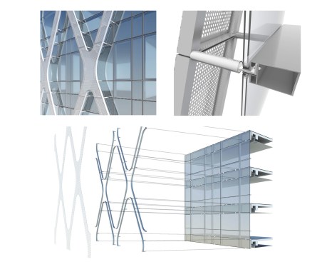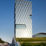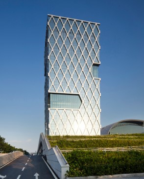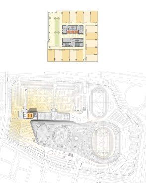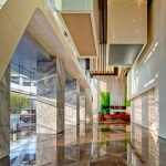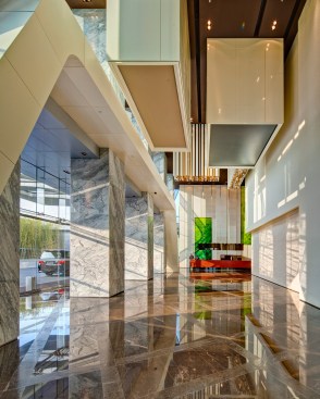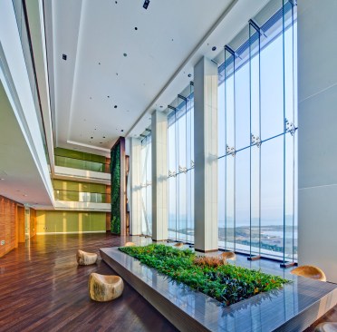 Located adjacent to an athletic complex, the Hotel Kapok is a 19-story boutique hotel offering 242 rooms and a variety of amenity programs. The form is simple, while the exterior expression is unique and bold. Clad entirely in high-performance glazing with integrated operable windows for each room; the façade is overlaid with a perforated metal scrim providing valuable exterior shading and visually referencing the diamond-shaped structure of the Sports Arena. A series of heavily landscaped surfaces on the rooftop create a destination dining experience for guests and visitors celebrating unobstructed views to the bay and beyond. A traditional west facing arrival court is sunken to help seclude activity from the neighboring Arena; while the hotel planning strives to provide a unique spatial quality that eliminates the cloistered nature of typical hotel corridors. The resulting pinwheel plan allows for corridors that end in vision glass with a punctuation of light and views. Four multi-story atriums reveal themselves on the facade as large voids in the exterior scrim, and rhythmically ascend up and around the hotel core to drive light deeper into the floor plans. Each atrium showcases interior vegetation while strategically locating varied amenity areas, sensitive of orientation, throughout the hotel.