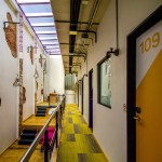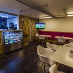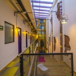 A burst of color coming out to the sidewalk in contrast to the daily gray that is discovered by the walker from the neon color-schemes suggesting a fascinating interior atmosphere. In the corridors and the perimeter circulation we observe the originality in the materials, finishes and design that jump in front of our eyes preventing the opportunity of analysis.