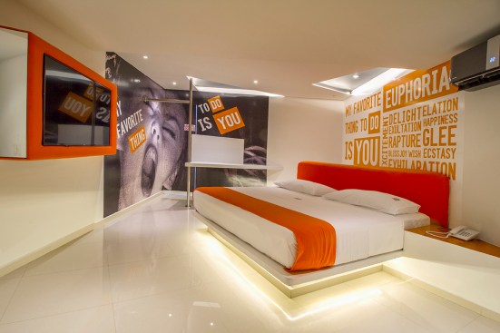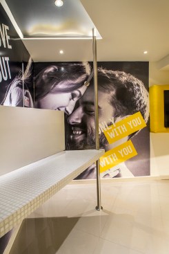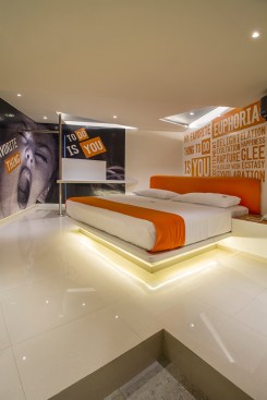 Once with the refined emotions they were related to a color that in combination with all the elements of each room defined a graphic language that generates four different ambiances. For joy it was yellow, for euphoria orange for lust red and for ecstasy purple, a dynamic selection filled with energy.