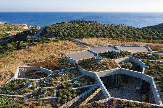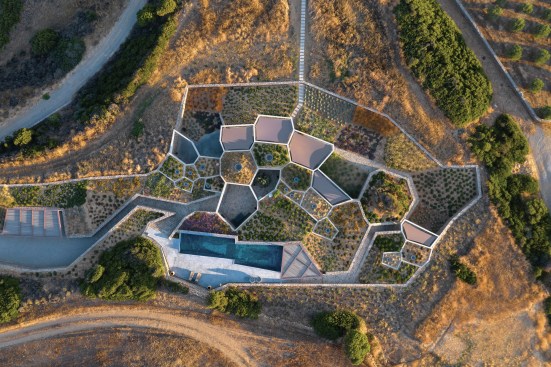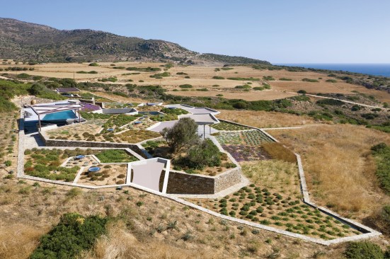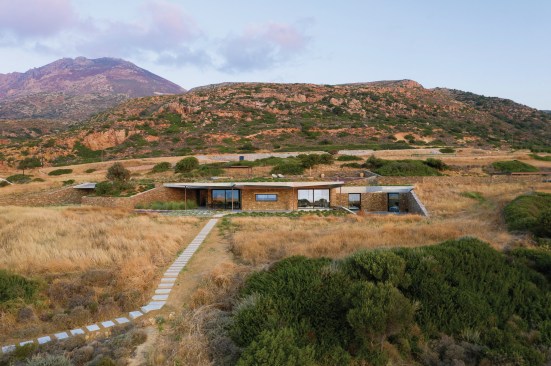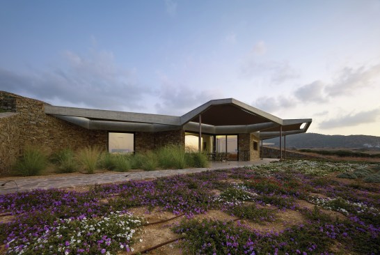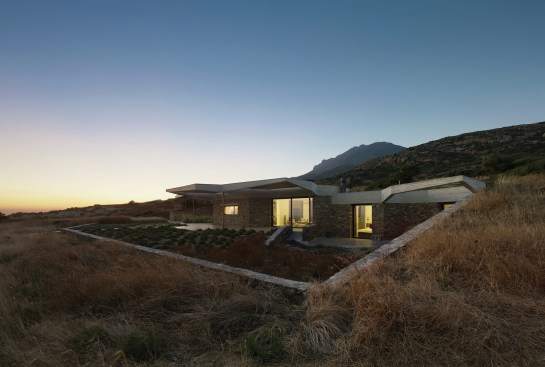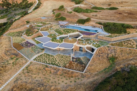 DECA Architecture recently completed Hourglass Corral, a house in the Southern part of the Greek island of Milos that is intrinsically moulded by the natural conditions of its site. Sunk low and stoic in the sun-drenched Cycladic landscape cooled by breezes from the nearby sea, it accommodates 4 bedrooms that all face South, the roof planted with a variety of aromatic plants. Forming part of the Voronoi’s Corrals, a larger territory the architects have been designing for the last ten years, the house is intended to generate a reciprocity between architecture and nature, geometrical rules and wilderness.