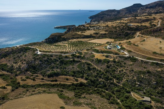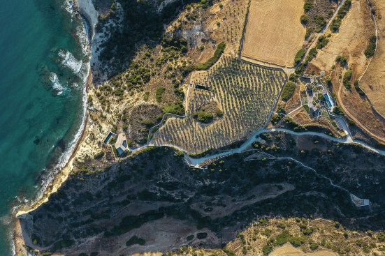 The project, that was completed in two stages in the span of eight years, lies somewhere between the practice of architecture and landscape architecture. After the Immersion Corral (built in 2012), a small twobedroom house located at the most dramatic location of the site, the Orchard Corral was completed in 2013, meant to preserve the agricultural nature of the 20.000 square meter property. DECA established the largest olive grove on the island here. The Preservation Corral, that contains a grove of fruit trees that are unique to the island and are nearly extinct, and the small Isolation Corral, entirely built by hand to preserve the surrounding nature, followed in the next years.