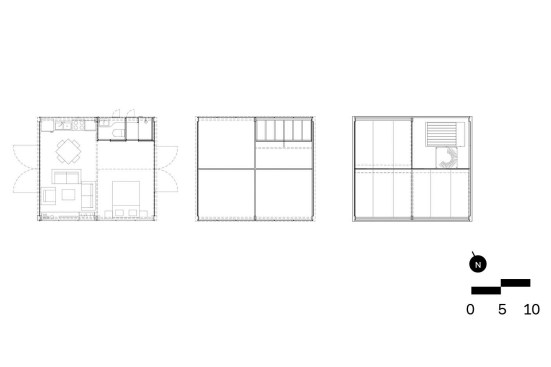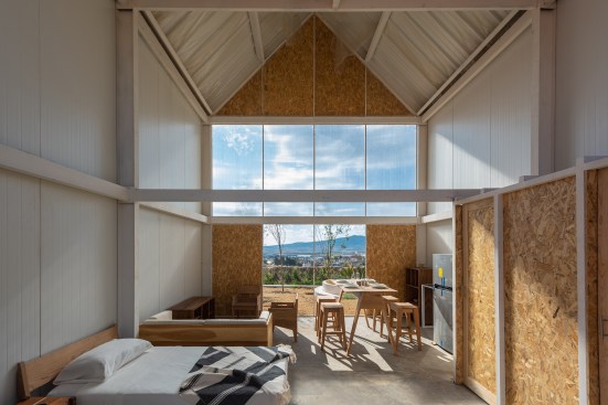 Constructed out of lightweight columns and beams allowing for easy reconfiguration and assembly, the proposed housing unit offers three possible rooflines: barrel vault, gable, and shed. These roofs cover an initial 30-square meter unit valuing flexibility in programming, development, and expansion over gross floor area. Horizontal extension of an initial structural bay expands the overall unit linearly, while vertical build-outs increase interior square footage. Hanging multiple levels from this structural frame, the home shifts ceiling heights based on programming; spaces are separated without the extensive use of walls or doors and become more private with each level. Interior environment and overall livability are ensured through the grouping of hot–and wet-humid spaces (for climate control), interior cultivation (for air quality), translucent polycarbonate paneling (for interior light), and facade openings (for cross-ventilation).