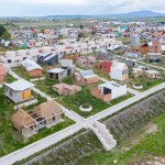 This housing unit is organized around three walls running its length, intended to reduce the cost and duration of construction by diminishing overall structure, to improve environmental performance by further insulating living spaces from public space, changes in exterior temperature, noise, etc. Closely spaced, two of these walls contain wet areas and building services. The home’s construction and organization are in two parts: block one (initial phase) and block two (expansion phase). Structural walls extend into the space fronting and between these two program blocks, creating private patios.