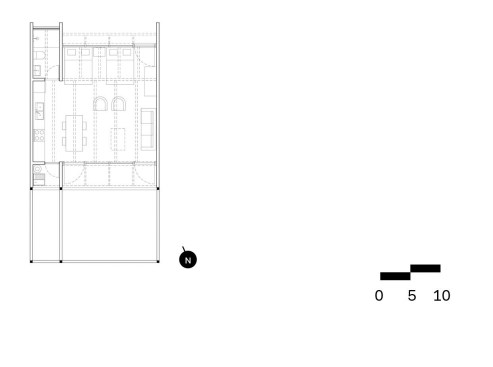 Notes: The primary elements of this project are its three walls, whose clear and efficient structural logic creates a simple clear-span interior. All growth occurs through either the simple repetition/duplication of the original unit or through the addition of a second story. The solidity of structural walls (or primary elements) suggests an infill site and produces an inward focus. Vaulted ceiling elements translate the simplicity and efficiency of the building’s structural system into insulated, generously detailed interiors.