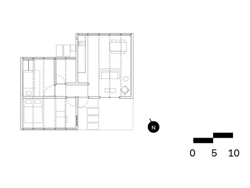 Formed from the union of two 6.0×4.4-meter volumetric modules, the proposed housing unit intends to demonstrate and develop the use of local, vernacular building materials and systems while maintaining sufficient simplicity to allow for inhabitant-initiated construction. (All constructive elements maintain their commercial dimensions, to minimize waste, but are nonetheless novel in their re-presentation of a flexibility in application and pleasant materiality.) The house foregrounds passive means of environmental control including: burying portions of its facade in areas where interior light and building entry are demanded less; adopting a northsouth building orientation and abundant openings to prevailing winds, for controlled lighting and cross-ventilation; and the inclusion of both interior and on-site agriculture as well as water-storage.