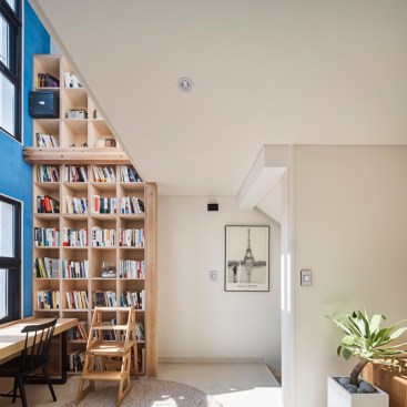 In small space, the spatial stacking method using the height is advantageous. In other words, Although, it is a narrow house of 2-3 stories house, it has a vertical openness in one or two spaces. I applied the concept of open spaces on the 2-3 floors of the courtyard and the concept of open spaces on the 2nd and 3rd floors of the library. I have eliminated the perception of a narrow house and the spatial stiffness. The house was not monotonous, and made it possible to have various spatial experiences.