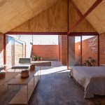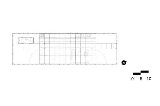 Notes: This project expresses each of its primary elements—reduced to the bare essentials of roof, truss, walls, and floor—in distinct materials. All unit growth extends these elements along the project’s length, housing all spaces within a single, clear-span volume. The solidity of exterior, structural walls again suggests an infill site but presents no front or back, creating an internalized site. Free planning of interior partitions and large barn doors on the project’s perimeter wall suggest a variable or conditional, contextual social stance.