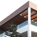Despite the tight construction schedule of just 5 months, the house incorporates many custom details, including a virtually frameless insulated glass wall and a hand beaten copper sheet main door.