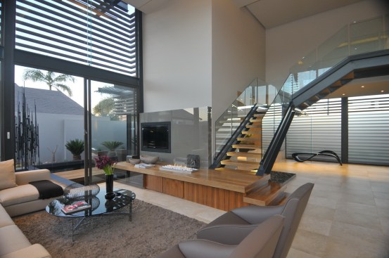The architect ‘opened up’ the existing living rooms and created double volume glass and steel enclosed spaces, within this area a magnificent and distinctive staircase was designed- it is a major feature within the residence.