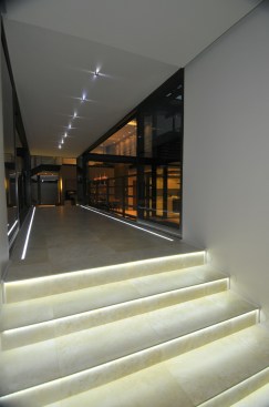 The double volume areas were fitted with vertical steel shutters for sun control, as well as a brise soleil.