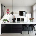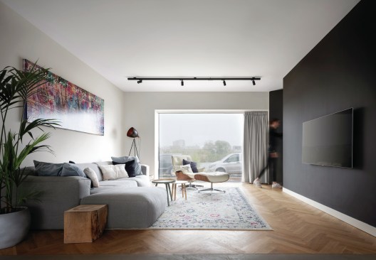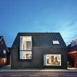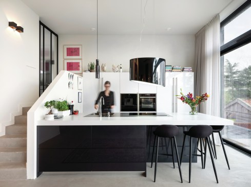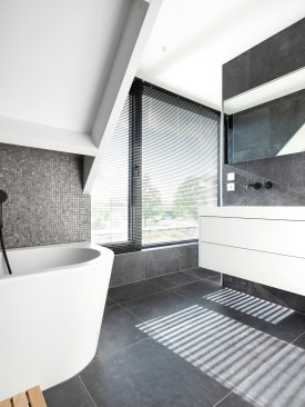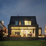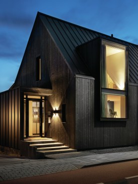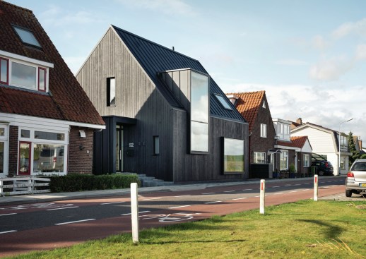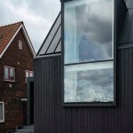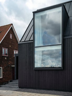 The black wooden ventilated façade in combination with a black metal roof ensures that the shape remains a whole and the large projecting windows with their reflection suit the house in an appropriate way. At the rear, the horizontality of the broad ground floor is emphasized by the large glass façade, which makes you directly part of the garden and makes the internal space feel even larger then it actually is.