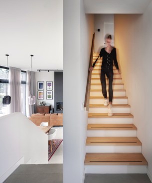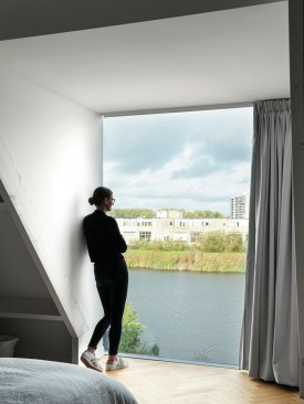 On the first floor, the family has two kid's rooms, two bathrooms and a large master bedroom with a view over the dike.