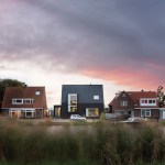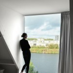 By embracing the current adjacent buildings and conditions of this location, a form has emerged that radiates simplicity and focuses with two large projecting glass fronts on the water with the city of Amsterdam on the other side.