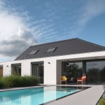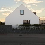 The first apartment, closer to the street, is resolved with the main residential space on the ground floor and all residential and sanitary facilities are located on the upper floor. The apartment units are separated from each other by large pass-through garages. The second apartment is mostly comprised on the ground floor, and only the relaxation zone and study are in the attic. The entire house faces the garden toward the pool. The building structure is conventionally made of ceramic bricks with reinforced concrete floors. The roof is laid on a wood-steel structure and is covered by a cement fibre template.