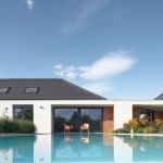 At the request of the investor, the architects Vítezslav Táborsky and Aleš Jeřábek from the AIR studio have designed a new family house on the Ráby site located on the northern edge of Pardubice in the foothills of the Kunětická hora castle. The land was originally occupied by a rural house with a small farmstead, whose gable visually matched neighbouring houses on the street. This determined the main theme of the new house. The duplex family house with a usable area of 476 m2 and a built-up area of 441 m2 have a modern design, but also fit into the surrounding environment. The investor’s request was a single-storey house, but it was necessary to find a use for the small attic in order to maintain the inclined roof, which is a protected monument under the Kunětická Hora castle. The house interior was designed by Architect Pavel Hrdý. The architects cooperated with the building construction company Stavby Brych, s.r.o. in the implementation of the project.