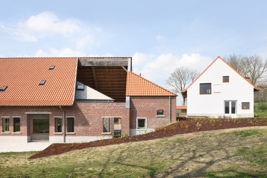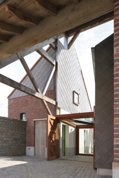 The reconversion of a courtyard farm into a single-family home. Not as a new housing typology, but as a rethinking of the existing farm typology – the typology of the farm as a spaces for living. A new structure is introduced within the existing farm buildings as an extension and refinement of these large spaces. A new, round volume becomes the connection point between the large shed – now as living area – and the smaller building – now for sleeping.