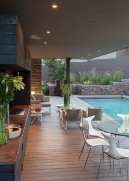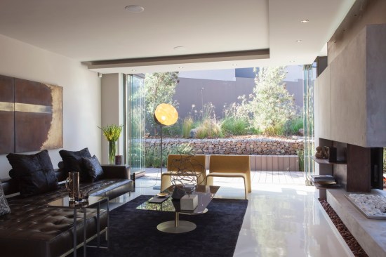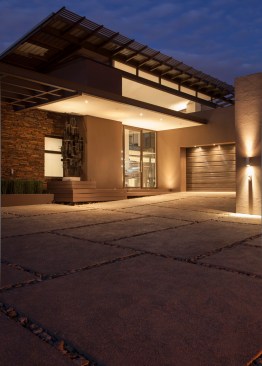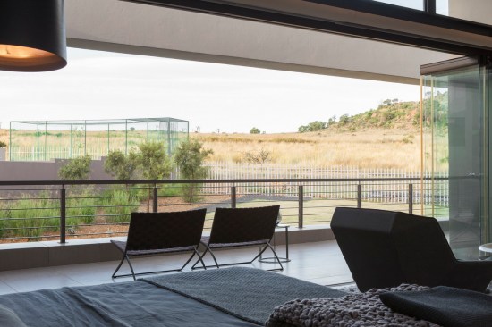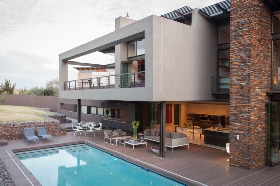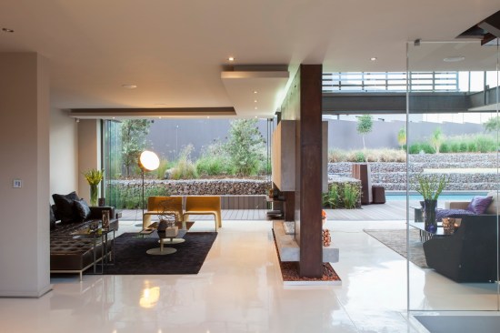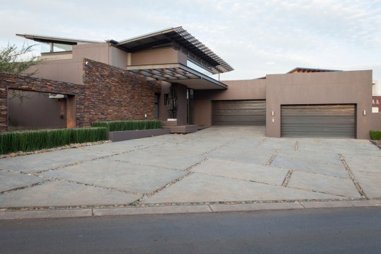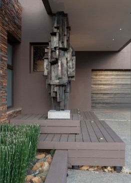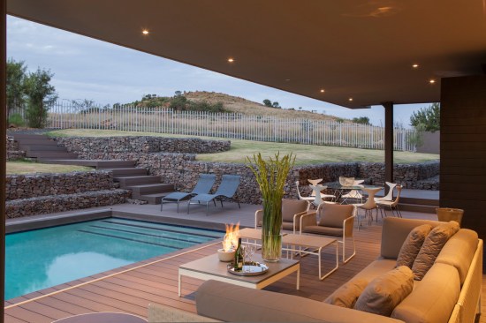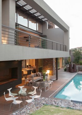 As the site sloped towards the street, terraces were built with gabions and natural rocks to enclose the north side, with the Highveld savannah beyond it where game roams.