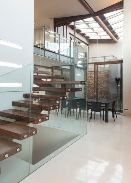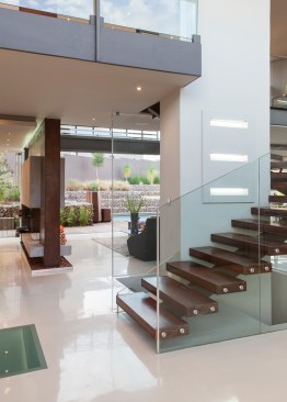 You can catch a glimpse of the floating staircase as you move through the house, giving the home an airy feel.