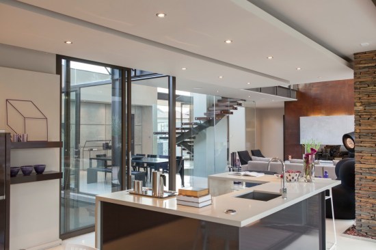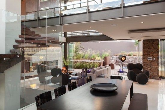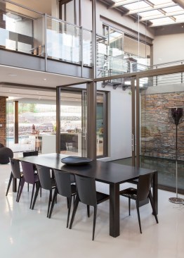 The clients requested a spacious modern house that expressed its appreciation for outdoor living. Situated in a private eco estate, it was crucial that the open plan glass and steel house lived out onto the garden. Consequently this custom design developed into a layout that encouraged such a lifestyle.