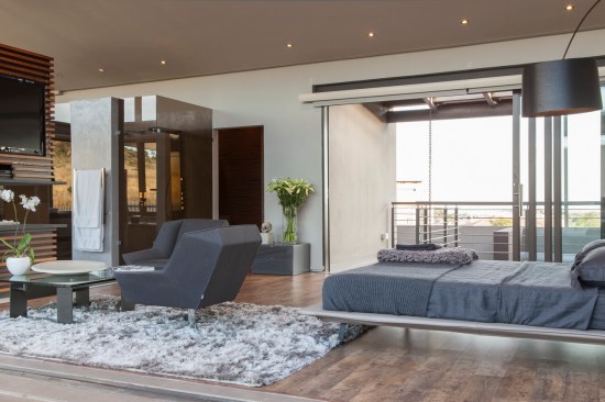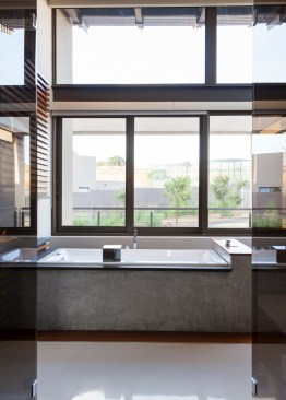 Escorted graciously through the living spaces into the garden, you are introduced to the main bedroom which appears like a floating block hovering in mid air.