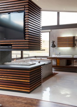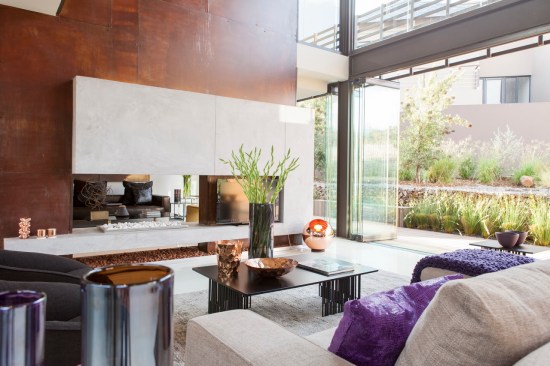 M Square Lifestyle Design made use of off-shutter concrete, rusted steel, natural wood and stone to marry creative form and function with the natural surroundings of the villa.