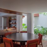 The design of volumes surrounding patios allowed the house to have big open spaces with natural illumination, which connect by elegant and wide hallways and bridges.