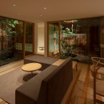 At “a yard for viewing”, it is designed to enjoy the extraordinary scenery, not only at noon, but at night, planting of the yard will be come up by turning off the inside lights and using the outside lights.