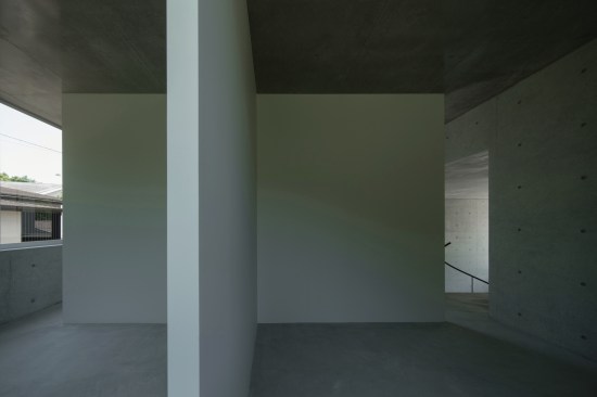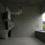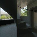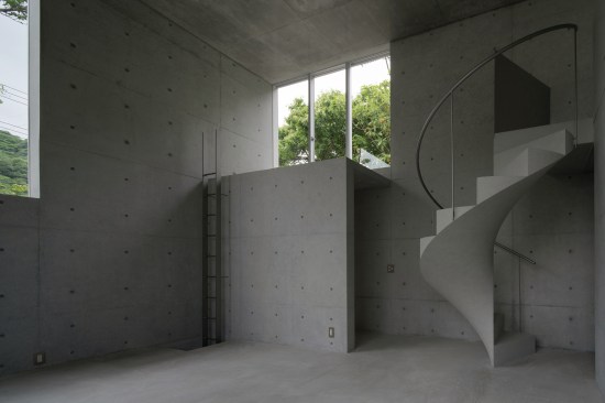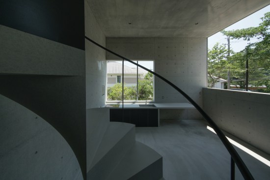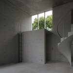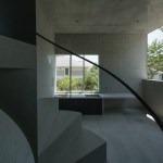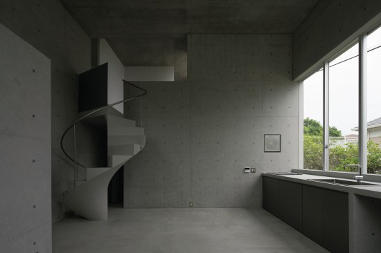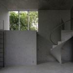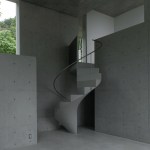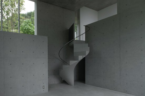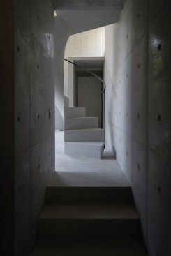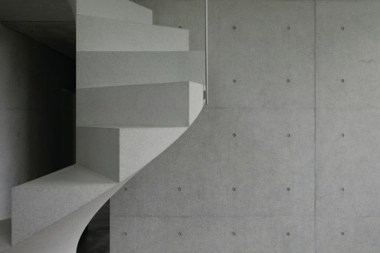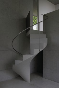 The curved surface of this concrete spiral staircase gives softness to rigid space. This sculptural geometric form goes beyond the function and becomes the Yorishiro (object in which a spirit draw), which symbolizes the unity of the family.