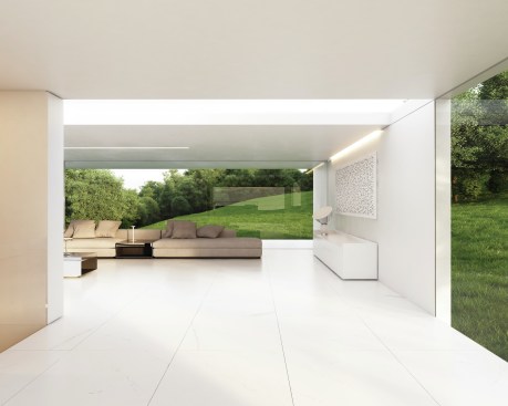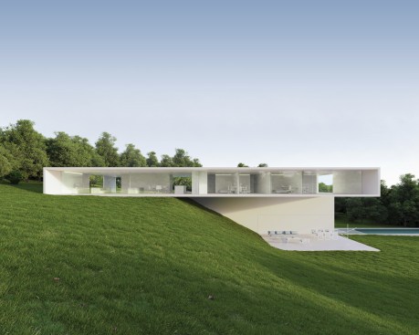 The house located in a privileged environment, arises from its implementation in the place. A plot with a steep slope that descends to the east and main views that open to the south. With this starting point the house is deposited in the upper level, supported by a single element that is arranged perpendicularly to the mountain. This element houses the technical and service areas and allows you to descend to the level of the lower garden where the pool is located. The floor plan of the house is articulated by means of the humid core that, located in the central part of the plan and illuminated via a skylight, hides the supporting structure. The day area and the bedrooms open out to the views, protected from the sun by the terrace. The studios and the multipurpose room open out to the northern light. It is the structure that allows the site to be used that characterizes the section that configures the entire house.