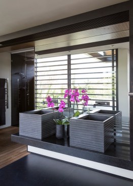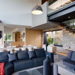M Square Lifestyle Design ensured that a mood of warmth and comfort filtered through into the interior spaces, and that the finishes remained true to the architecture of the home, thus emphasizing the modern clean lines and natural materials used throughout this house.