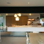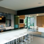The scullery, wine cellar and guest toilet are strategically concealed behind shop-fitted components enabling a simple contemporary interior. The kitchen counter doubles up as a server for both the kitchen and the lanai.