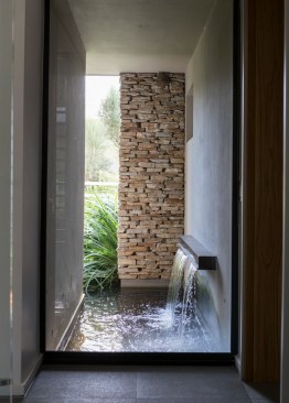 The design concept is undoubtedly a strong one which speaks for itself and whilst Werner van der Meulen was restricted by the estate rules which included making use of pitched roofs and specific natural materials, it was in fact these very parameters which led to the concept of a contemporary farmhouse. The floating double pitched slate roof also played a huge role in the development of the concept and reinforces the contemporary nature of the design.