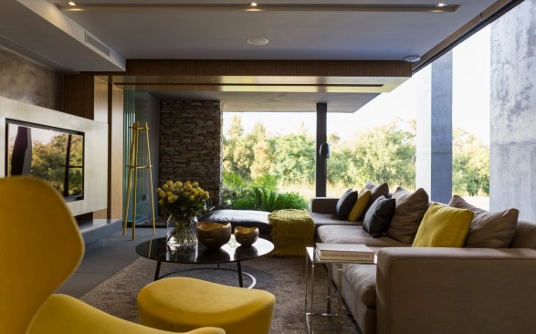 To achieve this M Square Lifestyle Design set out to incorporate materials like timber and stone, as well as materials such as concrete and glass into the interiors of the home, which facilitates in seamlessly blending it in with the estate’s country environment.