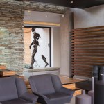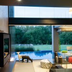 Making use of these materials created a textured and unique interior all the while aiding in the flow of inside and outside spaces. This visual incorporation of the exterior flowing into the interior, along with the linear design elements, allowed the area to further remain practical and uncluttered.