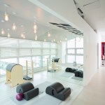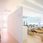 The main concept was how to divide the space with a high ceiling sized 60 py(198㎡). Space is divided into fitness room, office, shower/locker space especially fitness room divided into a private room, mat room, and reformer room. We had to find a way to make up for the coziness that wide-open spaces and stifling of dividing three different sports spaces with walls.