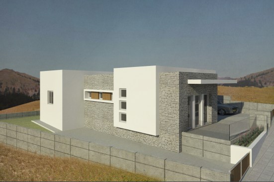 In this house with bioclimatic elements in Kantou, the building program was structured in such a way that it is fully operational, while the aim of the full exploitation of the environmental conditions in order to save energy and achieve thermal comfort for users was achieved. All the above, resulted its ranking in energy class “A”. The main idea, which determined the final morphological outcome, is characterized by the parallel synthesis of 3 monolithic volumes. Morphologically, the design combines some more “traditional” typologies and materials with other modern minimalist trends. In this design context, the “monolithic” volumes, are coated with different materials, from a neutral white color to stone and wood panels.