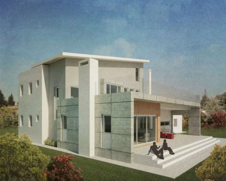 Το τhis proposal for a vacation house in the wider area of the Zoopigi village in Limassol, a more modern direction was given, given that the building is outside the traditional core of the village. The design moves that we followed, took into account the basic bioclimatic principles and opened the living spaces to the view and the light and tried to give purity and simplicity using sincere materials such as the exposed concrete and the neutral white coloring. A room with traditional ovens was integrated to the house, which serves the needs of the owner.