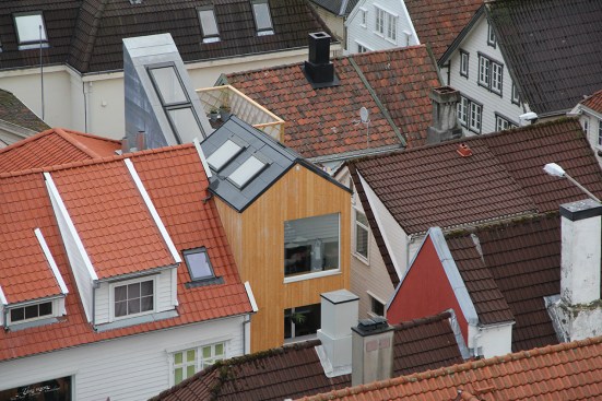 Nordic cities have a long tradition of building austere, small, wooden houses, packed together in tight communities with building densities that match even today’s modern metropolises. Especially in coastal Norwegian towns, where this house is situated, resources have been scarce, and this way of building has for centuries been maximizing energy efficiency, access to daylight as well as controlling small-scale outdoor local climate in a harsh climate.