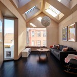 The interior spaces are sculpted to form a varied sequence of spaces, with emphasis on the changes between light and dark spaces as well as between open and intimate spaces. In a small house it is also important to pay attention to all the small “bonus” spaces, such as window sills for sitting in. The interior is all wood, ranging from dark pine floors to light beech walls.