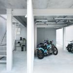 reveal an amply lit eight-motorcycle garage and maintenance room, and a