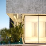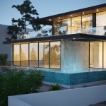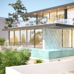 A pool in elevation, with a cascade, and interior water gardens, creates a good mood.