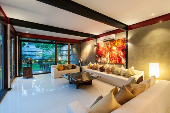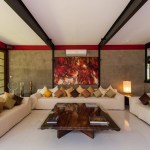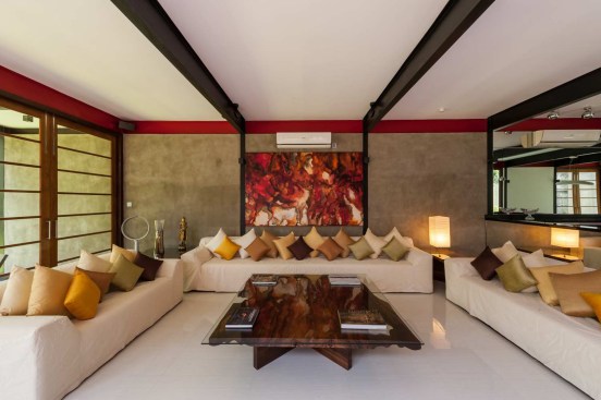 Furniture designed by the Architect compliments the Clean Lines of the House while being absolutely simple but unique in appearance . Artwork, Tapestries are also carefully chosen to complement, but not crowd the House . Elegance is spelt around the House , where the Furniture Design is married with into the straight lines of the House .