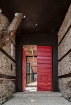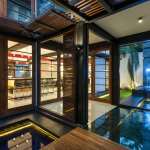 Keeping that aspect in mind, the more ‘ public ‘ entertainment areas : Sitting room, Bar and formal Dining room, were designed to be kept closed in the Eastern Pavilion , to enable easy maintainability.