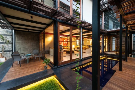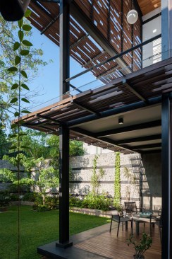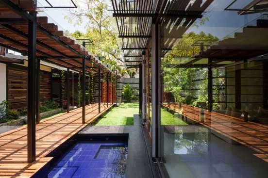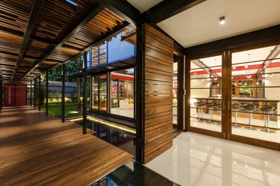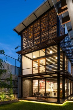 The Steel Structure was softened and brought to ‘ domestic level ‘ by the effusive use of a ‘ Irregular Timber Pergola’ that more or less created a ” Rhythm ” giving the House an district ” Identity & Flavor ” .