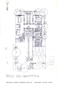 A beautiful Ehela Tree (Cassia Fistula) with cascades of seasonal yellow blossoms, is growing on the Northern Boundary, besides the proposed entrance to the House, with its sweeping branches spreading over the Entrance, the Garden and Approach road. This Ehela Tree that flanked the Entrance to the House, needed to be manipulated to incorporate it in to the Design. This for sure was the “generator” of the Design.