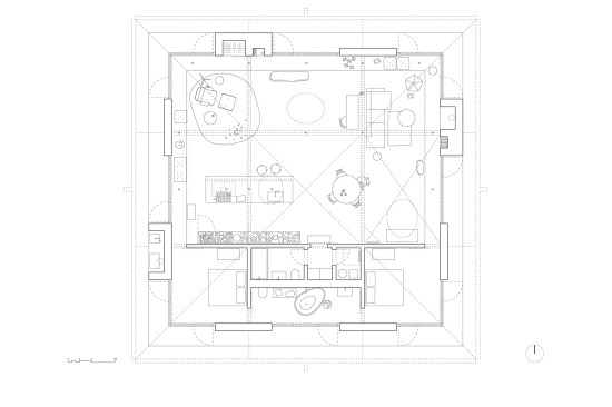 Referencing multiple architectural traditions—the one-room cabins of the American frontier, the rational grids of mainstream Modernism, the makeshift materiality of DIY—the design of the House of the Woodland is a testament to WOJR’s sophistication as well as its resourcefulness. Warm, cozy, but without a trace of preciousness, the project manages a delicate balancing act, in tune both with the beauty of the remote forested site and with the brief’s frank,