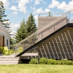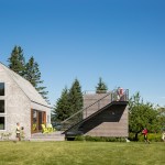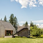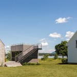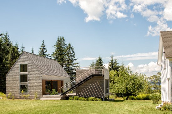 From AIA Maine: Located on a small island off the coast of Maine, this project began as a renovation. Initially, our clients hoped that an existing building on their property could be rehabilitated: a structure that accompanied the 100 year old farmhouse that has been their summer home for close to 40 years. The small, hip-roofed, asphalt shingle-clad building had been uninhabited and neglected for decades, and was in a state of disrepair. A new structure would more easily meet their needs but needed to remain rooted in the traditional style of the region. Collectively we arrived at a concept that is a modern interpretation of New England farm vernacular and establishes a hierarchical relationship between the prominent white clapboard farmhouse and the less adorned, shingled outbuildings. In order to accommodate multiple generations of the family, the main farmhouse would be given over completely to the young parents and children, and the new house would become the more private space for the matriarch. Between the two buildings a common area of outdoor lawn spaces and decks was created, along with a screened porch that could serve as both a gathering/dining area at times, while doubling as a privacy screen. The new house would be small and efficient, but comfortable enough for year round use, something that the old farmhouse, with its electric heat and poor insulation, lacks. Siting balanced the creation of outdoor space with the embedment of the house within the rural island fabric of the neighborhood. Furthermore, an ancient public walking path to the shore runs through the middle of the yard. Used by the islanders for many years, it is an important part of local tradition, something that the owners were adamant be maintained. In the end the path provides separation between the main house and new cottage while acting as an organizing element for an already constrained site. One enters the cottage off of a deck that unites the new house with a screened porch. A utility block containing entry, bath and kitchen elements subdivides the house into public and private spaces. The open living/kitchen space fronts the deck, opening onto it through a large sliding glass panel. The bedroom resides on the opposite end of the core. Quiet and meditative, it is content to gaze upon the spruce forest and ocean beyond, providing respite from the busy summer days.