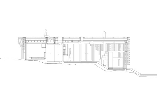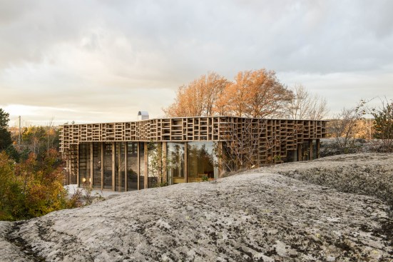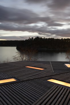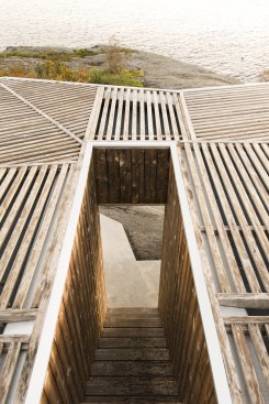 The small house is situated on an island on the south coast of Norway. The site is characterized by smooth and curved rocks that goes down towards the ocean. The house is built for two artists that wanted a house for contemplation and working.